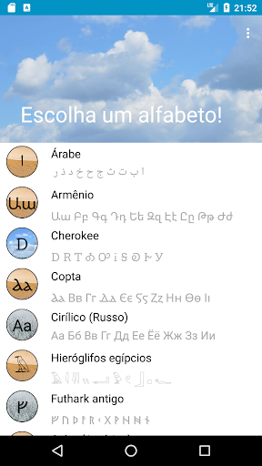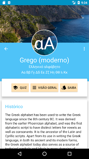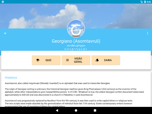 Nota: Este aplicativo não ensina idiomas. Somente na memorização dos alfabetos e scripts de escrita usados para escrever idiomas.