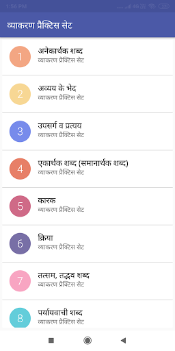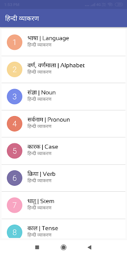 Este aplicativo de gramática em hindi em geral é um material de estudo supraficiente para todos os alunos que desejam se tornar commen sobre o hindi nos exames.O general Hindi Grammar App também o ajudará em vários exames em hindi.Também será útil para pessoas que procuram empregos no governo ou preparando qualquer exame de admissão.
