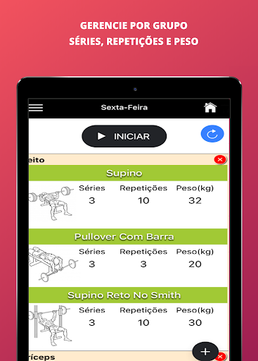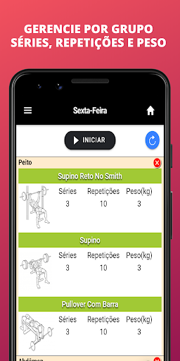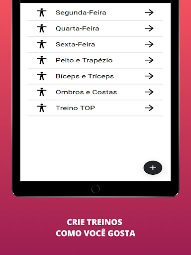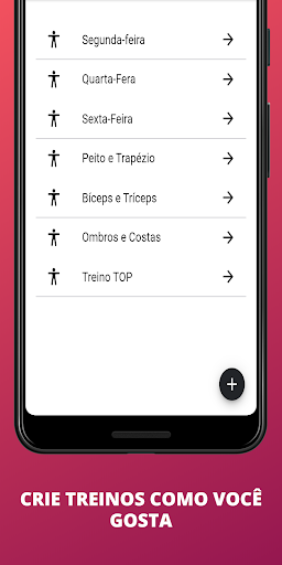 Divida seus treinos por grupo muscular, dias da semana ou como desejar!