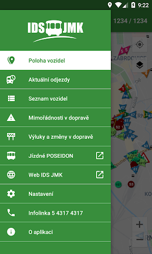 Esta aplicação é exibindo a localização atual e as partidas de todos os veículos no sistema IDS JMK, incluindo transporte público em Brno, Blansko, Kyjov, Břeclav, Vyškov, Adamov, Hodonín, Znojmo, Ônibus Regionais, Trens e outras informações de transportação (por exemplo, diversões, eventos extraordinários).