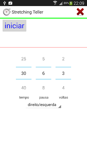 Temporizador básico útil para exercícios de alongamento. O cronômetro mostra o tempo e reproduz um som quando se inicia, acabamento e entre voltas. Início e fim tem um som diferente.