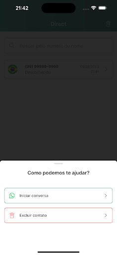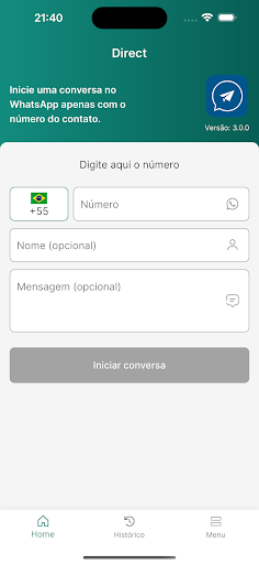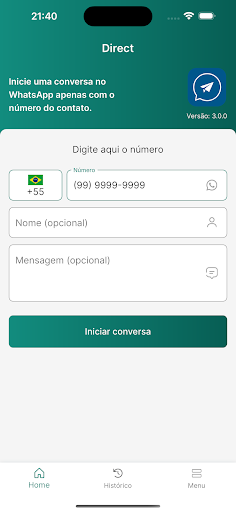 Com o aplicativo Direct você pode enviar uma mensagem imediatamente, para qualquer contato registrado no WhatsApp ou no WhatsApp Business, sem precisar salvar os detalhes de contato em seu Smartphone.