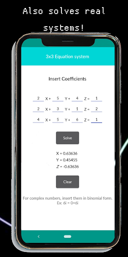 System of linear equations solver - Real and complex systems is a minimalist and useful calculator that will allow you to solve system of equations of real coefficients and complex numbers!