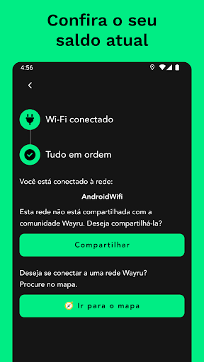 Encontre redes próximas para se conectar, monitore o estado da conexão, adicione saldo à sua conta de forma gratuita ou com opções de pagamento, e desbloqueie facilmente o acesso à internet.