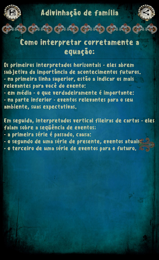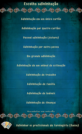 Para você não ficar de mistérios, agora sempre com você o mais exato compasso de seu destino. A base de interpretação são postos os valores individuais de cartas e suas combinações, o que permite de forma muito precisa formular uma previsão, e muitas vezes aumenta a variabilidade do resultado.
