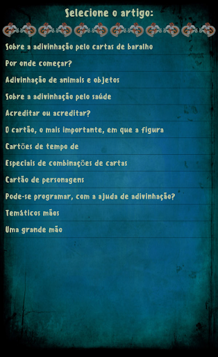 O aplicativo added 13 de direitos autorais os artigos que o ajudarão a descobrir a essência de adivinhação em cartas de baralho, e efetivamente aplicá-los em sua vida.