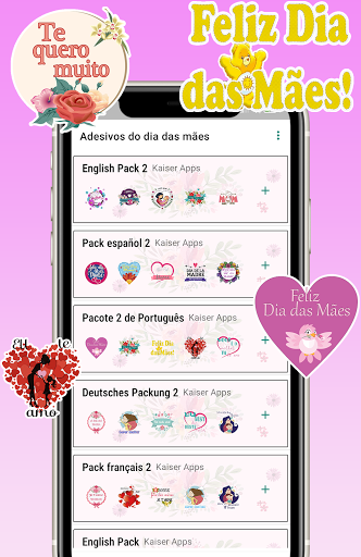 contém os melhores adesivos do Dia das Mães para que você possa parabenizá-la de muitas maneiras diferentes e originais e também, você tem adesivos multilíngües para que você pode felicitar no idioma que você deseja. Os idiomas disponíveis são: