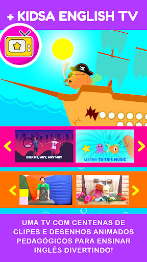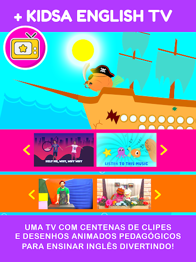 - Uma TV com centenas de vídeos divertidos, clipes musicais e desenhos animados para aprender inglês!