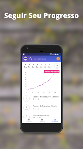 • Você pode acompanhar seu vocabulário atual, sua proficiência e seu valioso vocabulário a qualquer momento em suas estatísticas.