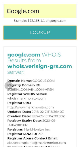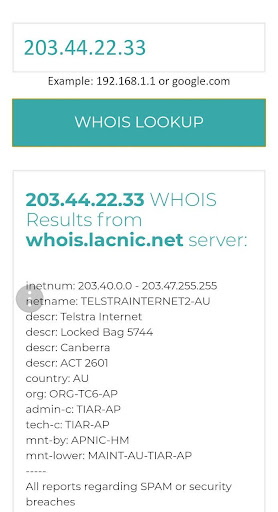 Essa ferramenta também permite que você procure os detalhes do IP Whois, incluem contato completo, inclui contato completoDetalhes da organização cujo nome o endereço IP é registrado.