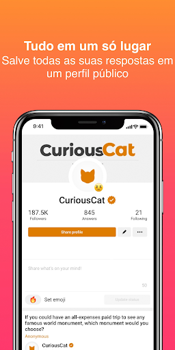 Curious Cat permite que você se conecte com seus amigos e seguidores de uma maneira única, graças ao anonimato. Você pode fazer a pergunta que o atormenta, sem hesitar, e até receber suas próprias perguntas!