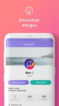 Slon é uma rede social de perguntas e respostas. Aqui você pode fazer perguntas para seus amigos ou desconhecidos, obter perguntas interessantes, respondê-las, trocar mensagens, etc.