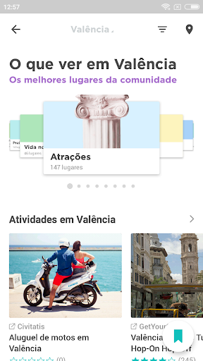 ➢ Na seção de 'O que fazer' você vai encontrar uma seleção de pontos de interesse imperdíveis em Valência.