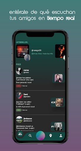 com humor, o usuário cria um perfil próprio e único composto de suas músicas favoritas diretamente escolhidas em Spotify.O aplicativo permite que os usuários ouvem música no Spotify Desfrute de toda a rede social e experiência de clube, compartilhando suas músicas favoritas com outras pessoas em ordem de preferência e sabendo o que está sendo jogado em Spotify, não apenas por seus amigos, mas por todos próximos graças aosistema de localização.