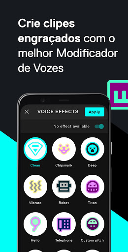 A coleção de vozes da Voicemod inclui efeitos robóticos, vozes masculinas para femininas, vozes assustadoras, sintonia automática e vozes inspiradas em seus personagens e celebridades favoritas. Você controla como você quer soar!