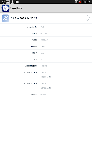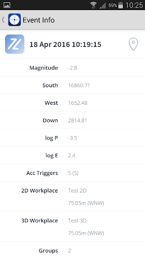 * Veja informações detalhadas de eventos, incluindo o número de estações sísmicas desencadeadas, localização, parâmetros de origem, o 2D e / ou 3d local de trabalho e o grupo de associação pertence a