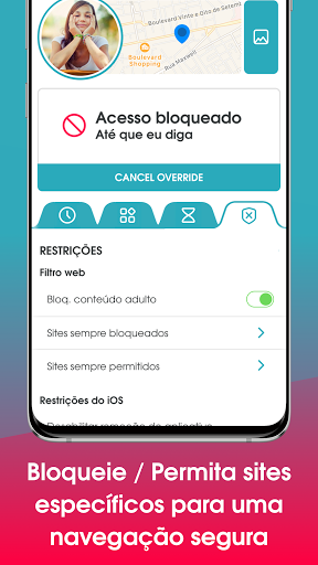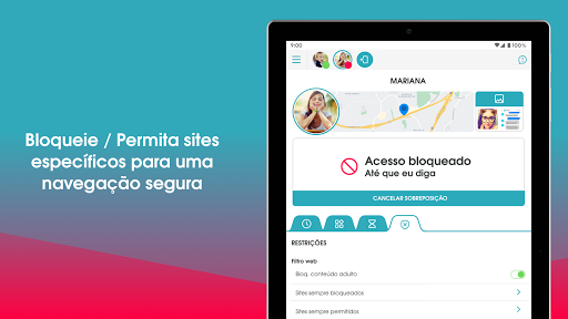 O OurPact lhe permite bloquear aplicativos como mídias sociais e jogos, além de proporcionar tranquilidade ao saber que você pode rastrear a localização de seu(sua) filho(a) e ter visibilidade de sua atividade on-line.