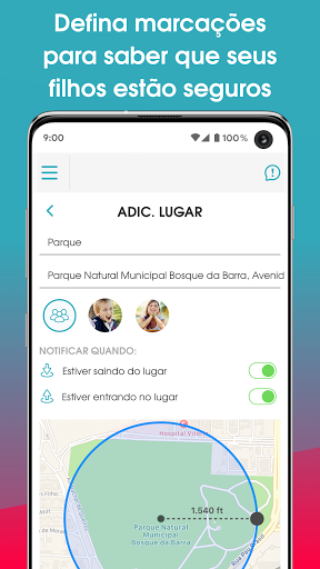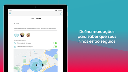 • Cerca geográfica em lugares - crie uma cerca geográfica por GPS em torno de lugares específicos e receba alertas em tempo real quando os filhos saem e chegam em casa, na escola ou em qualquer zona definida