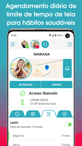 • Limite de tempo de tela - Defina limites de tempo de tela diários para seus filhos