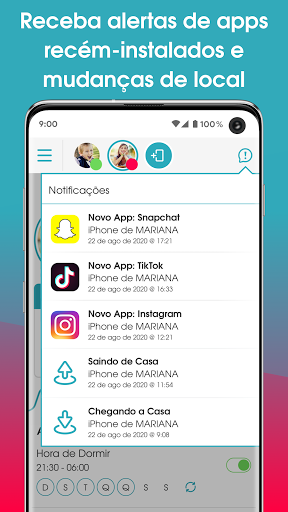 • Alerta de novos aplicativos - Receba alertas quando um novo aplicativo for instalado no dispositivo de seu(sua) filho(a)