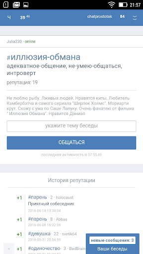 - todos os interlocutores que você tem antes dos seus olhos e você pode facilmente ver quem você está interessado ou interesse Na comunicação com você.
