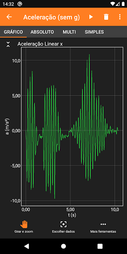 - Faça seus experimentos selecionando os sensores, o tempo da medida e criando visualizações especiais através do nosso editor (http://phyphox.org/editor). Esta análise pode ser simples como somar dois valores ou usando métodos avançados, como a transformada de Fourier ou correlação cruzada. Nós disponibilizamos vários conjuntos de análises.