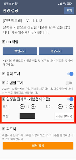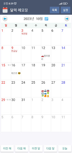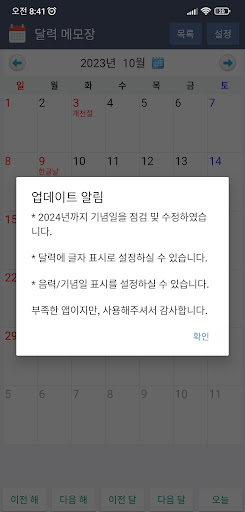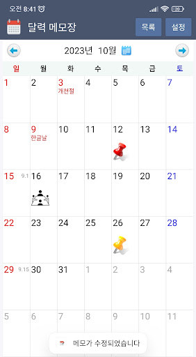 - 메모 입력시 현재 양력 날짜 기준 음력 날짜가 표시됩니다.