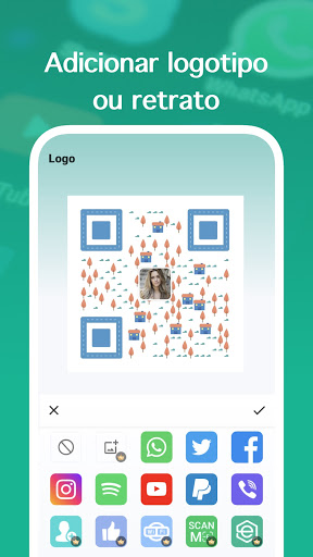 Gerador QR Pro – Criador QR & Gerador de Código de barras suporta a adição de logotipo ao código QR. Você pode adicionar seu retrato social ou logotipos da empresa em seu código QR para personalizá-lo.