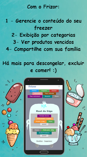 Frizor é a aplicação que lhe permitirá gerir o conteúdo do seu congelador. Você terá uma visão geral imediata dos produtos que ele contém e poderá monitorar as datas de validade.