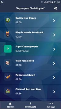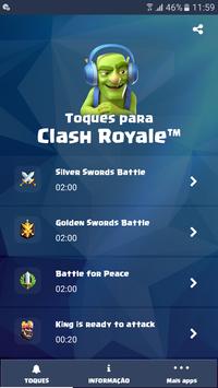 - Todos ouvimos falar de Clash Royale™, mesmo que não jogássemos esses jogos. Devemos admitir: esses jogos são realmente épicos! É por isso que agora você pode desfrutar dos toques mais populares e sons de Clash Royale™. Não é legal ?! Você pode ter certeza de uma coisa: com estes toques para celular gratis, sua popularidade entre os fãs de Clash Royale™ crescerá instantaneamente! Então, faça o download Toques para Clash Royale™, ouça os melhores toques para celular grátis e divirta-se!