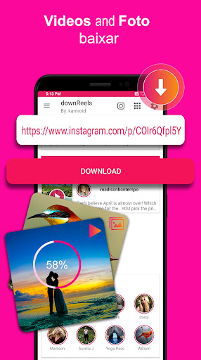 é o melhor aplicativo gratuito e simples para baixar vídeos, fotos, carretéis, história, destaque e IGTV do Instagram para o seu telefone. Nosso aplicativo é o mais leve e simples de usar.