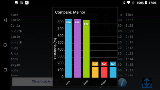 - Classificar resultados. Por nome, VO2Max ou data