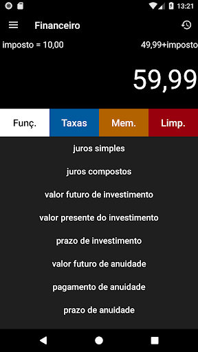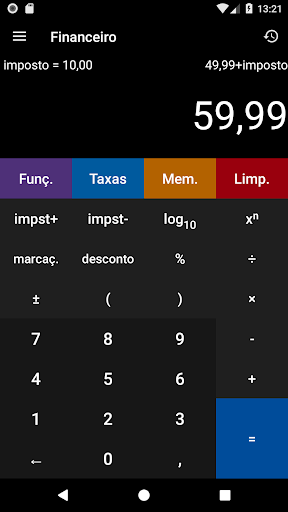 Inclui 6 calculadoras exclusivas: Básica Financeiro Programadora Científica Conversor de Moeda Conversor de Unidade