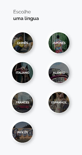 São oferecidos 7 idiomas por enquanto: francês, inglês, espanhol, italiano, alemão, chinês e japonês.