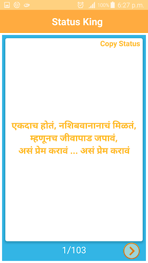 In this app marath,hindi,english,panjabi,telgu etc. language are added. Top status are included. Copy status feature available.