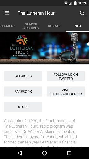 Ouça os sermões semanais diretamente do seu dispositivo móvel.Com este aplicativo você tem acesso aos sermões mais recentes, juntamente com transcrições de sermão.Aprenda sobre o programa de hora luterana e nossa longa tradição de oradores renomados.