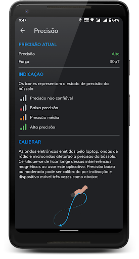 👉 O dispositivo deve ter sensor acelerador e magnetômetro, caso contrário, este aplicativo não funcionará corretamente.