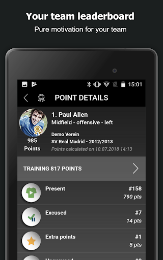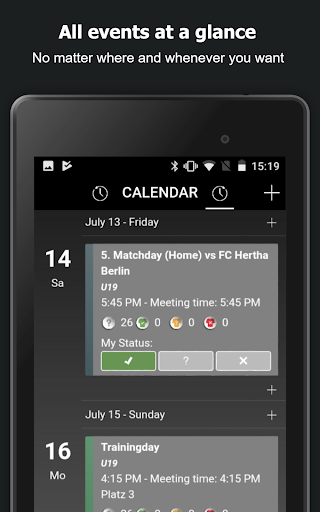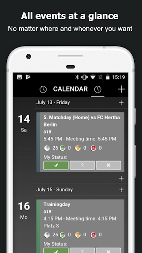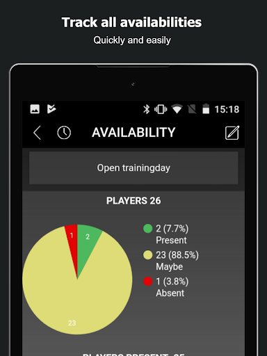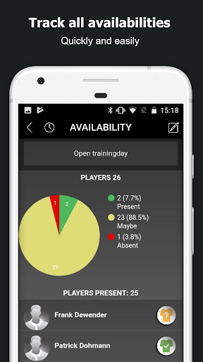 - Organize suas listas de disponibilidade em movimento ou deixe seus jogadores confirmarem a participação nos dias de treinamento, jogos, torneios ou eventos.Obtenha a visão geral que você precisa planejar sua próxima prática, jogo ou torneio perfeitamente