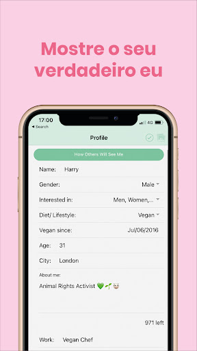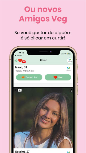 Todo vegetariano ou vegano sabe que não é tão fácil encontrar aquele par perfeito: às vezes, as diferenças de alimentação ou de valores entre vegs e onívoros podem ser inconciliáveis. Para muitos, não é só sobre não comer carne, mas sim sobre um estilo de vida e um conjunto de ideias que também influencia no namoro e nos relacionamentos. Foi pensando nisso que o Veggly foi criado! O Veggly é um aplicativo feito para você que gostaria de sair para um encontro já sabendo que o restaurante é vegano. Ou simplesmente fazer novas amizades, compartilhar receitas veganas e trocar ideias sobre a proteção do meio ambiente e dos animais com gente que também se importa! Disponível em 181 países, o app já tornou uma realidade no mundo inteiro a possibilidade de ter bons encontros com outros vegetarianos com muito mais facilidade e conforto. Encontre, dê match e converse com vegetarianos e veganos perto de você de graça!