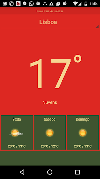 Aplicativo que traz-lhe as informações meteorológicas de Portugal em tempo real. Quer saber da previsão ou da temperatura para as cidades de Abrantes, Agualva-Cacém, Águeda, Albergaria-a-Velha, Albufeira, Alcácer do Sal, Alcobaça, Alfena, Almada, Almeirim, Alverca do Ribatejo, Amadora, Amarante, Amora, Anadia, Angra do Heroísmo, Aveiro, Barcelos, Barreiro, Beja, Borba, Braga, Bragança, Caldas da Rainha, Câmara de Lobos, Caniço, Cantanhede, Cartaxo, Castelo Branco, Chaves, Coimbra, Costa da Caparica, Covilhã, Elvas, Entroncamento, Ermesinde, Esmoriz, Espinho, Esposende, Estarreja, Estremoz, Évora, Fafe, Faro, Fátima, Felgueiras, Figueira da Foz, Fiães, Freamunde, Funchal, Fundão, Gafanha da Nazaré, Gandra, Gondomar, Gouveia, Guarda, Guimarães, Horta, Ílhavo, Lagoa (Ilha de Sao Miguel), Lagoa (Algarve), Lagos, Lamego, Leiria, Lisboa, Lixa, Loulé, Loures, Lourosa, Macedo de Cavaleiros, Machico, Maia, Mangualde, Marco de Canaveses, Marinha Grande, Matosinhos, Mealhada, Mêda, Miranda do Douro, Mirandela, Montemor-o-Novo, Montijo, Moura, Odivelas, Olhão da Restauração, Oliveira de Azeméis, Oliveira do Bairro, Oliveira do Hospital, Ourém, Ovar, Paços de Ferreira, Paredes, Penafiel, Peniche, Peso da Régua, Pinhel, Pombal, Ponta Delgada, Ponte de Sor, Portalegre, Portimão, Porto, Póvoa de Santa Iria, Póvoa de Varzim, Praia da Vitória, Quarteira, Queluz, Rebordosa, Reguengos de Monsaraz, Ribeira Grande, Rio Maior, Rio Tinto, Sabugal, Sacavém, Samora Correia, Santa Comba Dão, Santa Cruz, Santa Maria da Feira, Santana, Santarém, Santiago do Cacém, Santo Tirso, São João da Madeira, São Mamede de Infesta, São Pedro do Sul, Lordelo, Seia, Seixal, Senhora da Hora, Serpa, Setúbal, Silves, Sines, Tarouca, Tavira, Tomar, Tondela, Torres Novas, Torres Vedras, Trancoso, Trofa, Valbom, Vale de Cambra, Valença, Valongo, Valpaços, Vendas Novas, Viana do Castelo, Vila Baleira, Vila do Conde, Vila Franca de Xira, Vila Nova de Famalicão, Vila Nova de Foz Côa, Vila Nova de Gaia, Vila Nova de Santo André, Vila Real, Vila Real de Santo António, Viseu e Vizela? Aqui esta a app que procura.