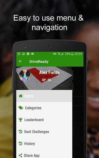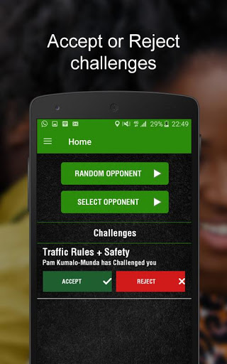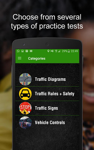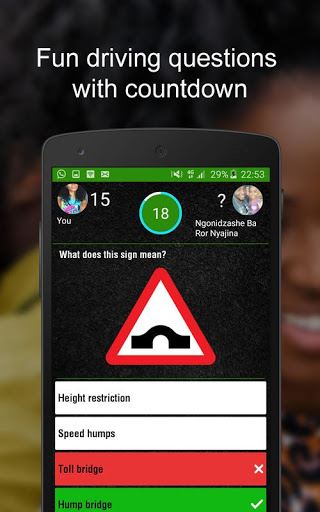 Challenge random opponents to quick, real-time provisional license theory test questions or selectively challenge opponents from around Zimbabwe. Climb the leader board and claim your title. Every provisional license test challenge test challenge has a 21 second time limit AND the longer you take to answer a question, the lower your score. You can choose a category with different questions. There are questions about Zimbabwe road rules & safety and road signs.