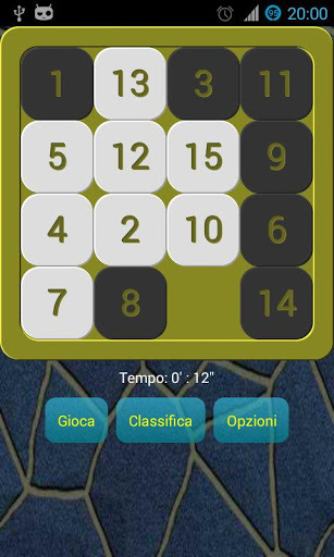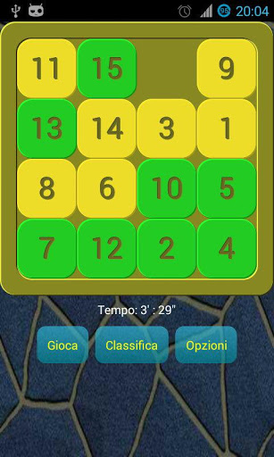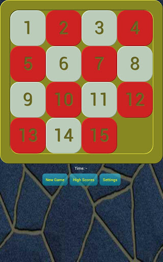O jogo de quebra-cabeça clássico 15. Você tem que mover as peças até que todos eles são ordenados com o "buraco" no canto inferior direito.