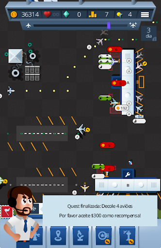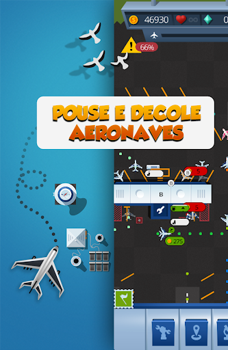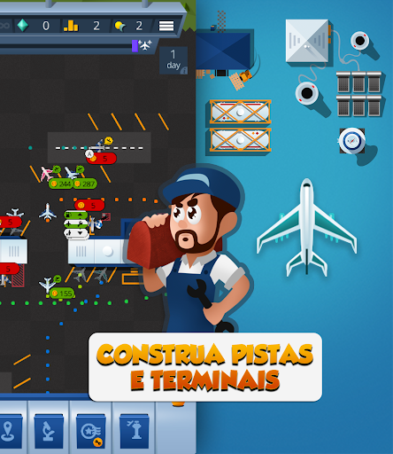 : Crie Torres de Controle para aumentar o fluxo aéreo e destravar novos aviões, ganhando mais dinheiro.