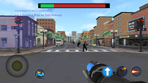 Divirta-se com este grande jogo de vídeo fps na modalidade de captura A bandeira A dinâmica do jogo é muito simples que você pertence à equipe azul que você deve explorar o mapa junto com sua equipe para localizar a bandeira inimiga e levar para a sua base, mas o busca de equipe oposta para capturar seu sinalizador primeiro para o qual você deve planejar bem sua estratégia, também coleta armas incríveis acumulam 3 pontos e progresso de nível explorando novos mapas