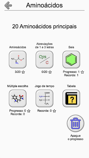 O app é traduzido para 8 idiomas, incluindo o português e inglês, para que você possa aprender os nomes dos aminoácidos em qualquer um deles.