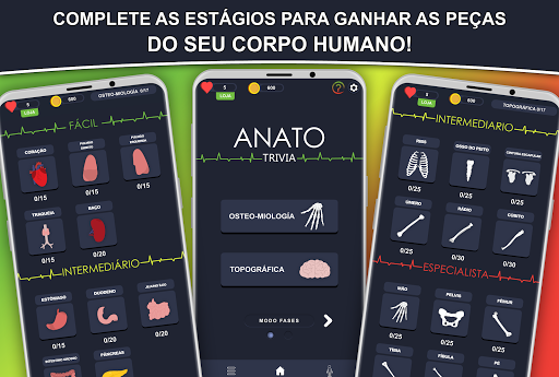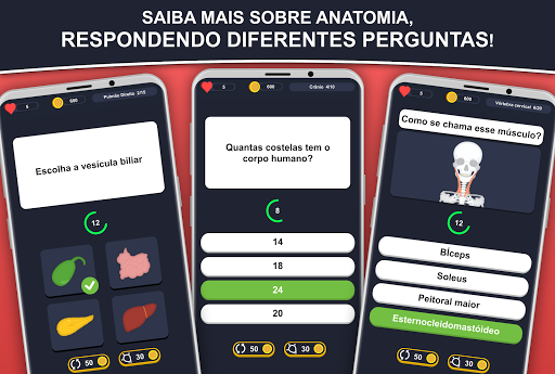 Divirta-se enquanto consolida, descobre e aprende novos conhecimentos de anatomia humana com o Anato Trivia.