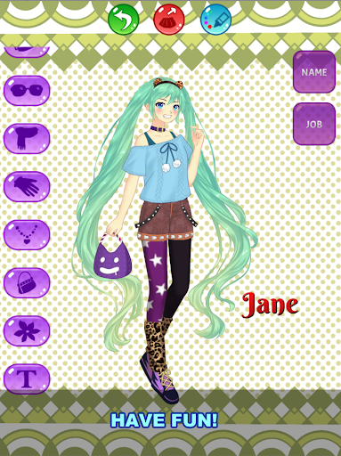 Anime Boutique: Doll Maker é um criador de avatar, vestido para meninas. Você pode criar seu próprio personagem feminino o mais livremente possível, junto com bichinhos fofos. Escolha uma roupa nova, roupas novas, sapatos da moda, bolsas, vestidos, maquiagem e muito mais! Você pode mudar a cor da pele, cabelos, olhos, roupas, até mesmo o fundo agora! Faça a coleção de suas próprias bonecas para jogar novamente.