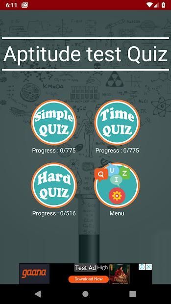 To increase your GK(General knowledge) of Aptitude test this Aptitude test Quiz will be better helpful for you. It has above 770+ questions you can solve or learn here. Aptitude test Quiz application is with negative marking can be also very helpful to prepare for competitive exams.