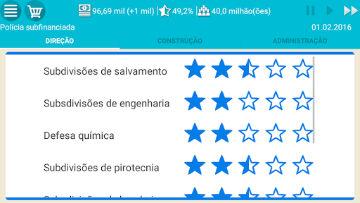 - Realização de treinamentos da tropas do estado (você tem acesso a mais de 10 tipos de equipamentos).