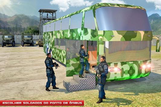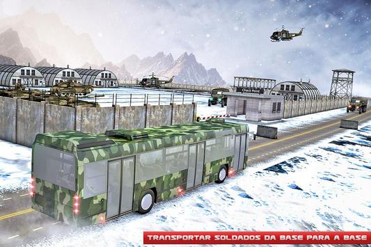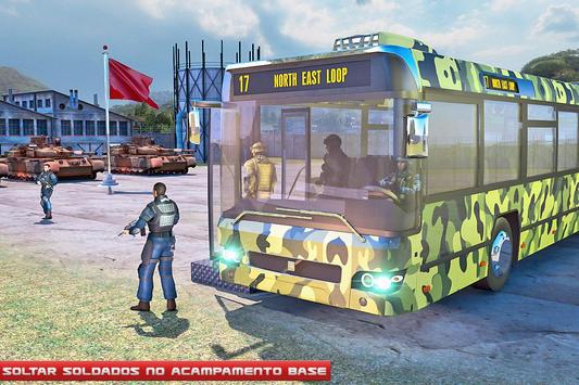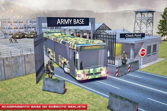 baixar esta exército moderno ônibus treinador simulador. A guerra está sobre nós e suas forças armadas precisam de seus serviços. Você transportará soldados de infantaria e comandos. Além disso, seu outro dever é conduzir veículos militares nas zonas de guerra também. Existem ônibus do exército, caminhões e outros tanques destrutivos localizados no acampamento base do exército, que está instalado na área de guerra. O perigo de inimigos e as ameaças de invasão estão sempre presentes, sempre prepare-se para defender a sua terra natal ao transportar soldados, personagens armados, munições e armas, dirigindo o ônibus do soldado militar nas rodovias da montanha e na área offroad na selva ou na floresta. Então, apresse-se. Os soldados estão na fila no campo de parada do exército para embarcar em jeep militar e veículos pesados.